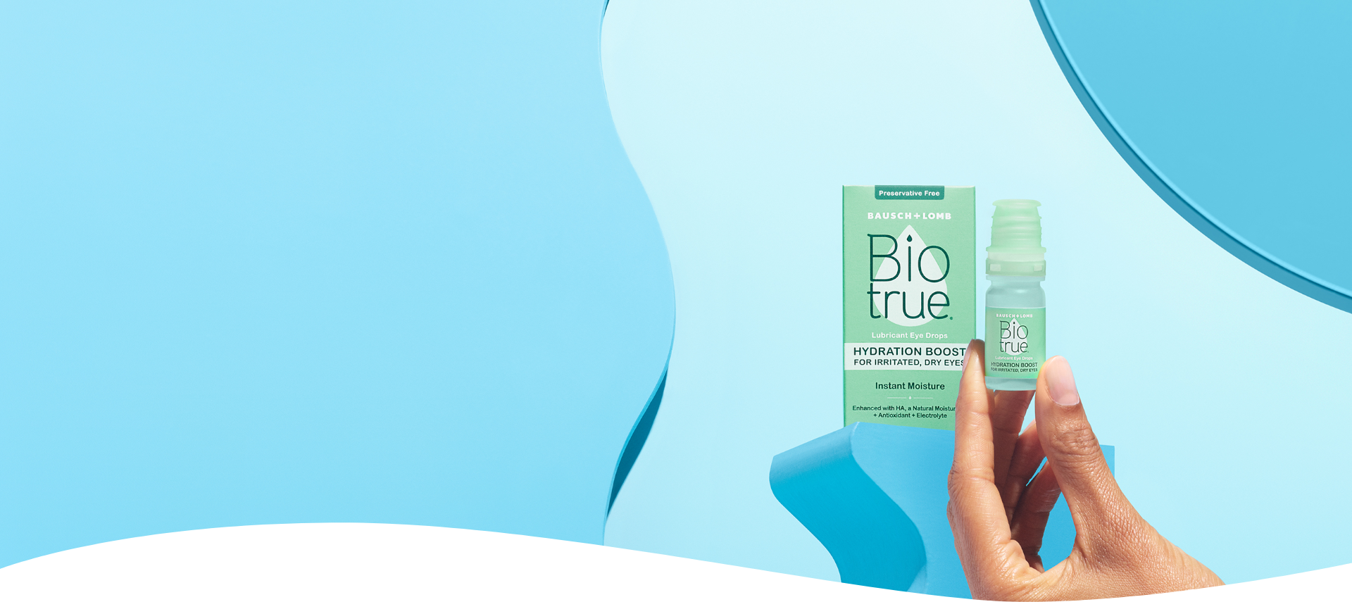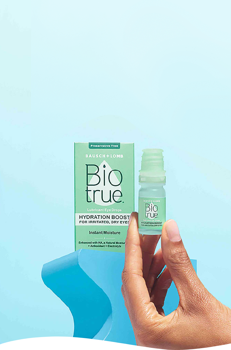 Hyaluronan (HA) a moisturizer found naturally in tears is also found in Biotrue.*
